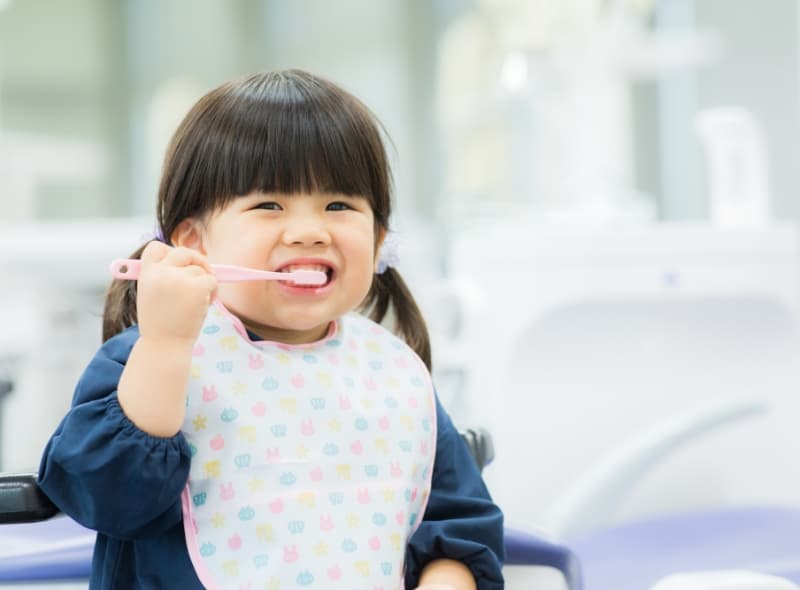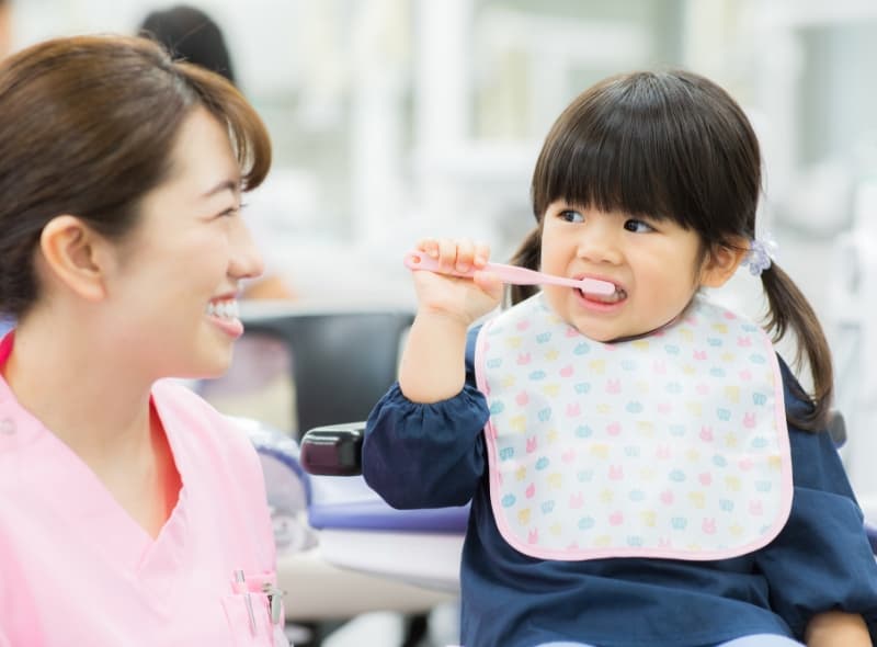 - 当院では、お子様の成長段階に合わせた正しい歯磨き指導を行っています。歯と歯の間や奥歯など、磨き残しが多い部位をお伝えし、適切に歯を磨けるようにわかりやすくアドバイスいたします。また、保護者の方による仕上げ磨きの方法もレクチャーいたします。お子様の歯の健やかな成長を、一緒にサポートしていきましょう。